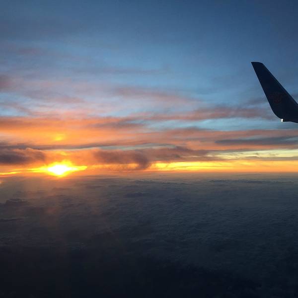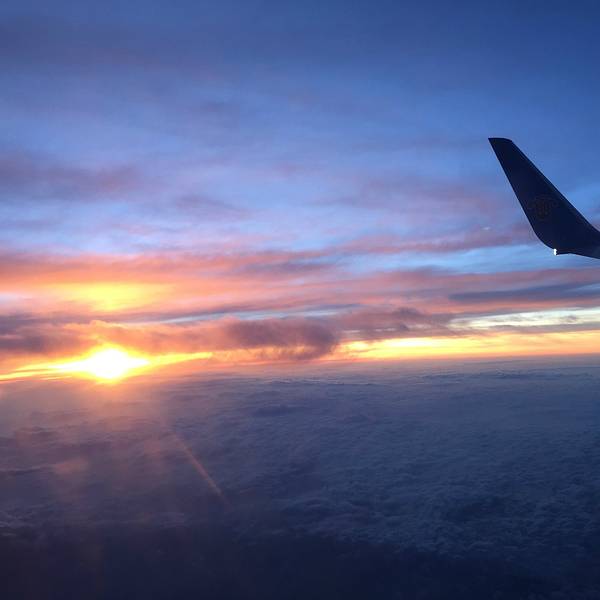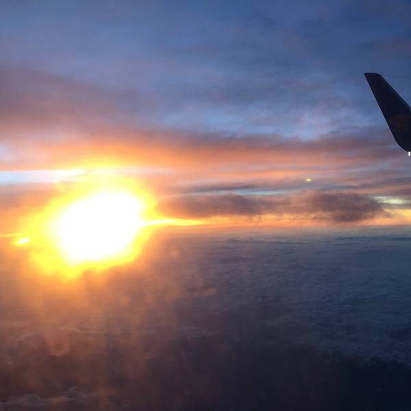 最后在机场的M记吃了午餐。别人国家的一对麦辣鸡翅。O_O!这是火鸡吧。而且超!级!辣!的!傍晚18点准时起飞,终于要离开了,又在飞机上看了日落。