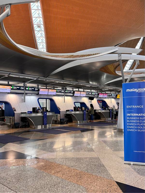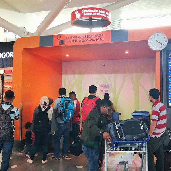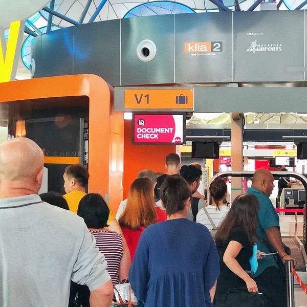 3.18,本该回国的我们错过了飞机,接下来用小篇幅介绍下这一天在机场遇到的事。我们15:00从双子塔出发16:00不到到达机场,打车花了75RM,17:56还卡在第三层安检(与国内不同的是这边亚航机场在上飞机前还有一道安检口,不分流的那种),18:00的飞机,18:04没赶上飞机,所以朋友们,提前三小时从市区去往机场的朋友们,奉劝一句再早一个小时会比较保险。好了,言归正传给大家简单介绍下到了机场的步骤,首先是退税,要拿好退税单和需要退税的商品,机场工作人员需要检查。 检查完的东西可以放到行李箱去取票托运(如果你要托运的话),再次强调,亚航托运要钱,越早买越划算,回程不要抱有侥幸心理,检查口门口两台大称等着你,被查到再在机场买托运价格就很贵了。你可以选择在这个地方称重和同行的小伙伴匀一下重量。 关于值机找到这个地方自助值机,因为有中文显示所以不多做介绍,如果你买了托运就点击屏幕打印行李标签,因为购买的是行李重量,这里可以选择输入托运几个箱子就会打印几条行李标签。然后自助办理行李托运。接着去V1处接受检查,带好护照、签证、机票、相关资料最好也备着,我们用了倩倩的名字买了四个人的托运,然后她不用接受检查,比我们少了一道程序。然后到下图这个地方,将护照和机票递给工作人员(注意门口显眼的两个大称)接受检查。 PS:目测他们只查行李箱重量,因为我们的背包和袋子都没查。退税处👆 接下来就是没赶上飞机在机场过夜了,重新买的航班是厦门航空,价格是马来来回加起来的票价的两倍,在另一个航站楼,要做小火车到达。不是亚航会方便很多,虽然都是在最后上飞机前还有一道安检,但是这次采取的是分流安检,只在每个登机口处设立安检,而亚航是没有到登机口有个大安检,很浪费时间。