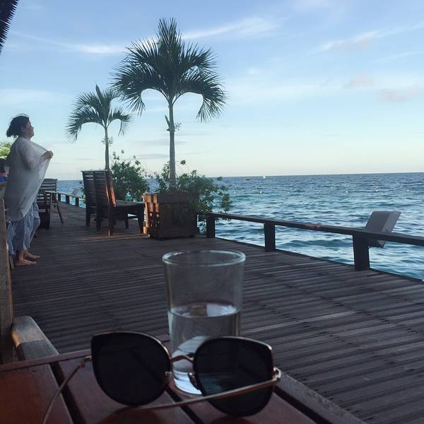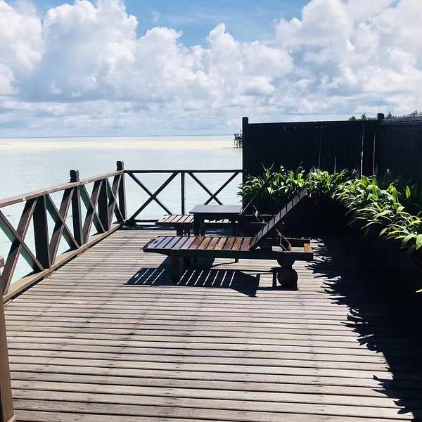 在这里我立即把所有的机票订单复印件拿了出来。他看了以后说了大概几句我么有听懂的英文,我只能眼神无辜。但最后一句我听懂了:have fun。出去两个姐姐已经在等我了,据说他们没怎么被问,你看是不是歧视新办护照的人~~~。在机场换了200人民币,居然只有110马币。我不太开心,婷姐姐说第一次出国到泰国,会在货币上的落差小点。发现了vivo广告牌,很兴奋,两位姐姐嫌弃我,说哪个国际机场都有。出了国才知道,原来国外的机场没有免费的热水提供,想喝水花钱买。找热水的时候遇到一华人小姐姐,她看着我穿的厚毛衣说我是不是低估了他们马来西亚的天气。我看着她穿的短袖短裤问她是不是太高估了上海的天气。机场排队托运行李在这里我们犯了个错误,一直依赖飞机场的电子显示屏上给出的信息,一直等到五点多还没有显示我们那班飞机在哪个柜台cheak-in。我们才开始用英语询问。才知道半夜看到的一直排长队的地方就是我们需要办理托运的地方。还好我们醒悟的早,时间来得及。马航其实还不错,只是饭太难吃了。出了斗湖机场就有人呼叫我们的名字,带我们上车,车程80分钟到达码头进行登记,坐船45分钟就到达了卡帕莱的海上木屋。当大家开始下船,木屋的工作人员非常热情引导大家喝水吃饭休息。然后才开始签署安全声明,告诉大家所有注意事项。郝姐姐在快艇上拍摄的照片,没有任何滤镜。非常好的服务,进入房间,水已经倒好冰好,电风扇已经打开,我们洗簌完毕,出门欣赏美景和拍照。郝姐姐,在海边的照片,很美吧。我们木屋后面的院子,那是我们的“后海”餐厅前面的风景,很多人都在这里拍照。这张我把婷姐姐拍的有两米么有,😊不是特别想为大家放很多的照片,因为如果大家问我,到了卡帕莱第一眼什么感觉?我会说哇,太美了,和很多游记里的照片一摸一样。卡帕莱很美很美,希望大家能够去了惊讶她的美,而不是已经在我的游记里全部欣赏了。两位姐姐说我穿的太多了。在卡帕莱,一日三餐都是自助的,不难吃,也不能说特别好吃,但该有的都有,还有糕点下午茶。我们吃了晚饭就回去休息了,毕竟熬了夜。一张夜的照片。