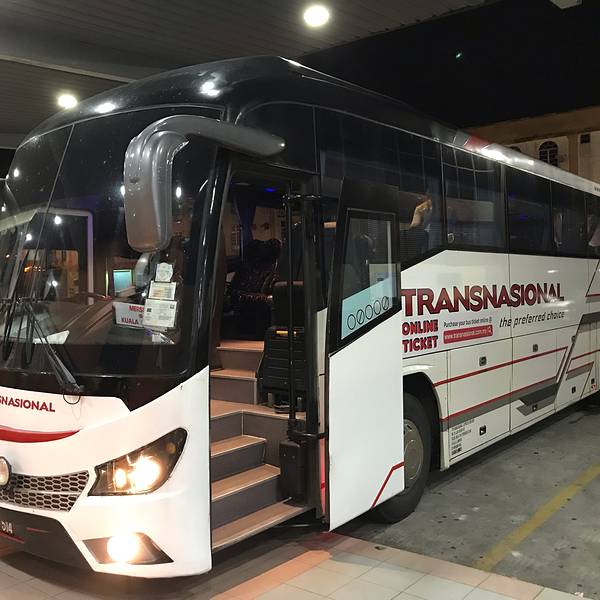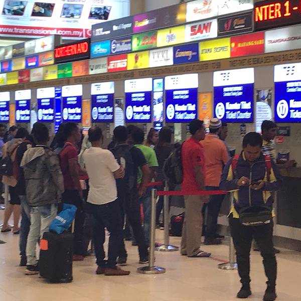到达吉隆坡机场后,办理入境手续过程也算是顺𣈱,花了约40分钟已经可以提取行李离开,因为我们订了当晚23:30的车从TBS去丰盛港,所以先在机场吃点东西后再去TBS车站。阿坤吐司店这是我们在大马的第一餐😝😝在机场这个Budget taxi counter 买票去TBS,路程约53公里TBS车站大堂。 因为我已在网上订了票,可以直接到这里取boarding pass 后等上车如果没有在网上订票,可以在这里直接买票等上车,很方便入闸后在等车。 要留意你订的汽车公司名称,巴士会在开车前约5分钟驶近,不要上錯🚗。车上座位祇有23个,很宽松及舒适👍,这班车差不多爆满,汽车准时开车
