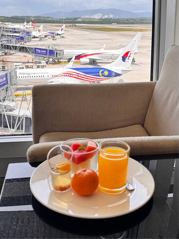 吉隆坡T1马航休息室如何呢⁉️ ♨️休息室位置 位于吉隆坡国际机场T1卫星航站楼的黄金休息室翼, 临近机场轻轨, 需通过主航站楼安检后换乘轻轨或免费巴士前往。 可以在‘eraman’这个店旁边的电梯🛗直接去二楼 ✈️设备设施 整体设计风格非常现代 分为用餐区和主休息区 主休息区内几乎所有座位均可俯瞰停机坪 简直是航空爱好者的福利 提供免费Wi-Fi、淋浴间、自助酒水吧等 🥣餐饮 餐饮分为单点餐厅和自助区 单点餐厅提供现点现做的餐食 自助区供应轻食、沙拉、甜点及水果 都很新鲜 比较适合简单充饥 整体餐饮水平中规中矩。 🏠Malaysia Airlines Platinum Lounge (Satellite Terminal,KLIA T1)