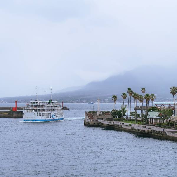 17世纪荷兰殖民者为获得肉食从印度尼西亚引进了爪哇鹿在该岛进行养殖,岛屿因此得名鹿儿岛。这第二次来鹿儿岛一切都那么轻车熟路,仿佛回家一样。萨摩青年群像交通: 【市电】「水族館口」下车 徒歩約5分,到樱岛轮渡港(鹿児島港側) 【巴士】「水族館前」下车,到樱岛轮渡港(鹿児島港側) ↓ 乘船 約15分 【轮渡】樱岛轮渡岗(桜島側)这几天每天都阴雨蒙蒙的,船上的人明显比上次来要多很多。看别人介绍,如果去鹿儿岛最好准备一副口罩,因为说不好什么时候火山会喷发,那儿的人们都习以为常了。