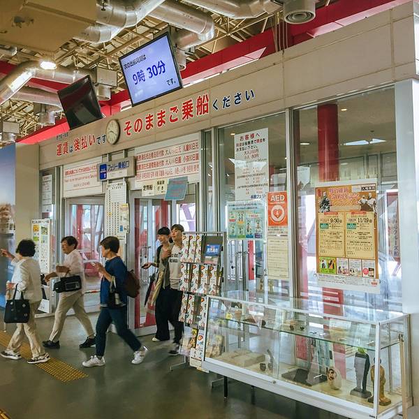 鹿兒島的機場 小巧玲瓏 機場大廳寬敞明亮 行李提取 證照查驗 豆 省時省力 服務台提供所有旅遊資訊 也有很多中文版宣傳可取 由國際線航站樓 左轉 步行3-5分鐘 便是國內線航廈 入口處 有免費的機場足湯區 泉水溫熱 很多遊客在此休憩 再走個2分鐘 便是機場大巴的售票窗口 1250日元 直達鹿兒島中央驛 約45分鐘 是旅客的首選