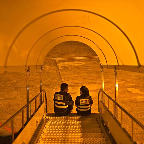机场候机楼前空空荡荡,当时天还没有亮。很多保安“迎接我”进入楼内。楼里也是空荡荡,办理登机牌的柜台无人值守,一打听?还没上班呢。