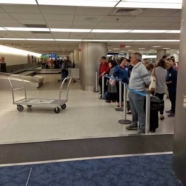 迈阿密国际机场的行李搬运太慢,我们下飞机后将近一个小时,才拿到行李。后来地导解释说,一来是午夜搬运工人少,二来同时有几个航班降落,忙不过来。感觉如果美国人这么一个工作节奏,早晚会被中国赶上。摄于上...
