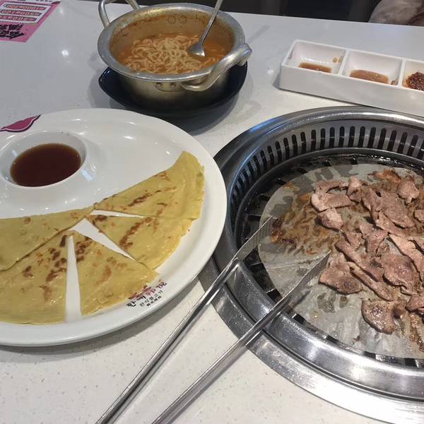 吃烤肉的时候旁边坐了几个奶奶带着孙子也吃烤肉,一行人从进门那一刻开始就打破了维持已久的安静,吵吵嚷嚷地,我们本来打算在烤肉店消磨时光,看这架势赶紧吃完溜之大吉。