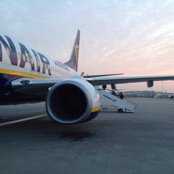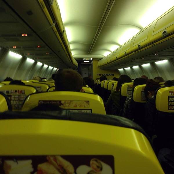 凌晨3点机场起着雾。飞机的内部装修,真是廉价到底。RyanAir的小飞机,需要自己爬楼梯登机~