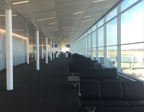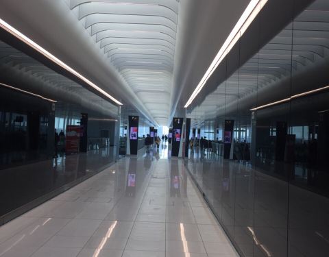 伦敦第三大机场,有大巴和火车连接城市中心。建筑风格很简洁,航站楼之间有小型轨道车转运旅客