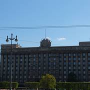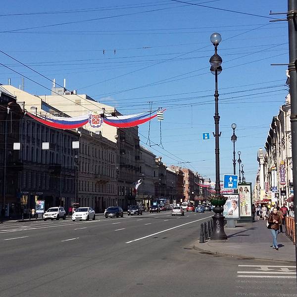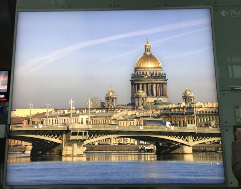 还是在酒店吃的早餐,之后收拾东西退房,退房很快。坐地铁到Moskovskaya地铁站,出来看见公交车或者小巴去机场的上就行了,车很多。一出门发现庆典的条旗挂起来了,估计马上要有庆典活动,难怪酒店都这么贵。圣彼...