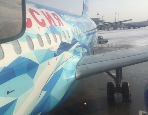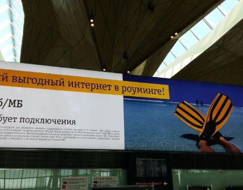 还是在酒店吃的早餐,之后收拾东西退房,退房很快。坐地铁到Moskovskaya地铁站,出来看见公交车或者小巴去机场的上就行了,车很多。一出门发现庆典的条旗挂起来了,估计马上要有庆典活动,难怪酒店都这么贵。圣彼得堡机场办理登机手续也很快,毕竟都选座了,只是锁丢了怕行李散了。进了安检正好有几个商店,在其中一个买到了索契纪念版的小锁。候机楼有商店(烟酒化妆品衣服)以及快餐,也没吃,飞机上怎么也得发点什么的哈哈哈。不过唯一特色的店是有一家圣彼得堡泽尼特的专卖店,有纪念夺冠的海报等等,登机的时候正好有一只足球队队员一起,不过不知道是哪只球队的。 航班号SU13,圣彼得堡-莫斯科科谢列梅捷沃机场D,12:05-13:25.