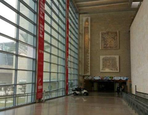 - 特拉维夫国际机场,宏达有历史和民族的特色,巨大的休息大厅很多人在这里吃喝休闲,墙上的马赛克特别漂亮