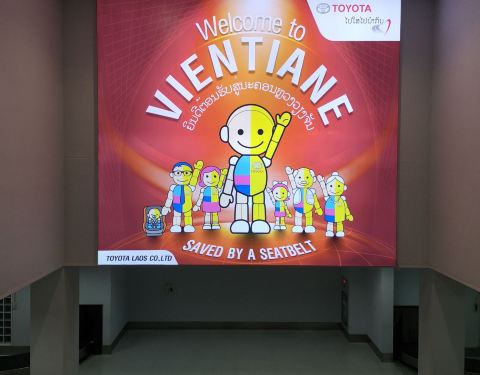 - 老挝万象机场很小,国内国际都是一块地方。老挝旅游,从万象转机去琅勃拉邦,然后又去了次机场的国内航班处