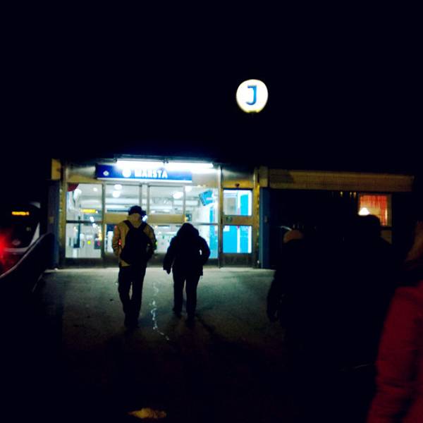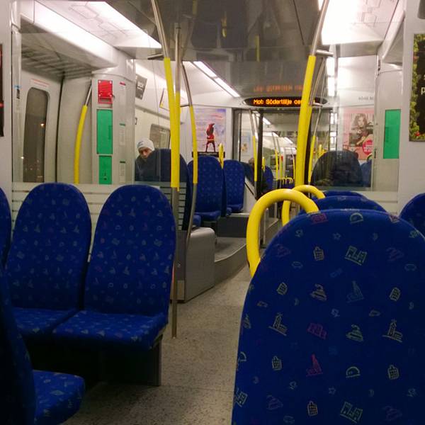 机场巴士583路,做了两站,到达一个小地铁/轻轨站(Marsta Station),换乘小火车……一个小插曲,出示斯卡进站后,小火车已经在等待了,当天是周六,当地时间早上7点多,天还没亮乘车人很少,小火车的门已经关上了,于是我就傻傻的等待它开走,然后来下一班……