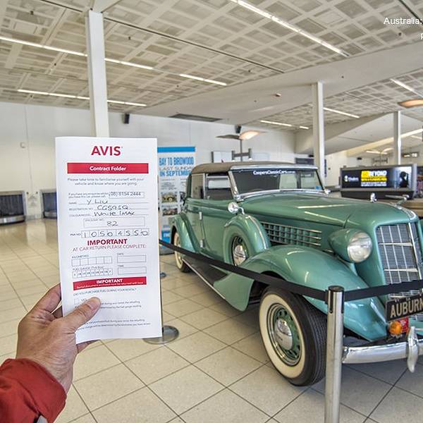 阿德莱德国际机场在机场看到这台很酷的老爷车。到达机场后第一件事就是找到我们在租租车上预订的AVIS租车公司去提车。在机场的出口大厅就很容易找到AVIS租车公司。