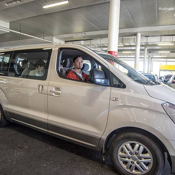 我们租的是一辆7座的现代Hyundai imax 车型。车开出来时是以加满油的所以不用担心一开始车没油了而找加油的烦恼。就这样我们提车了进入了澳洲自驾模式了。这里给大家提个醒在机场提了车后因为是第一次驾驶右舵车和国内行驶是相反的方向,所以格外小心,因为阿德莱德机场出来有很多环线路由于第一次的不熟悉有可能开到对方车道上和走错路。