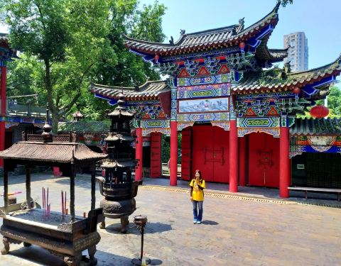 南湖公园就在火车站对面,出站向左向右都可以到。公园临湖靠山,环境清幽,内还有寺庙、生肖园、美术馆