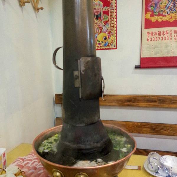 来到吉林市,这种火锅应该是排名最靠前的特色名吃。满族火锅的锅和老北京火锅长得还是一样