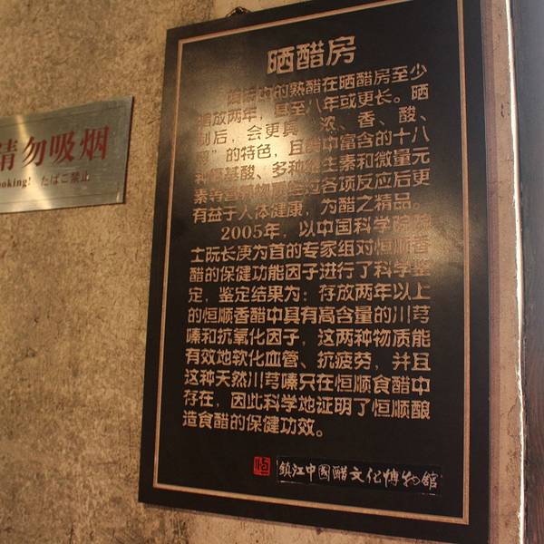醋文化博物馆的门票是30元人民币,网上的价格是20元人民币,目前这里算是小众旅游地,一般来参观的游人并不是很多,三月份已经进入了镇江旅游的旺季,但是游此景点时候整个馆区几乎无其他的游人。博物馆提供免费的讲解服务,会对博物重要的历史、文化、文献进行讲解,即使只有1个游客,讲解员解说的也比较细致。整个博物馆面积并不是很大,讲解员只是解说重要的事物,跟着讲解员游览下来大概时间是1个小时左右。醋文化博物馆的建筑风格为江南的白墙瓦黛的仿古建筑,分为醋史馆、老作坊、陈列馆等,醋史馆内以图文的形式介绍了中国各个朝代的制醋的方法。总体来说醋史馆的内容不是很多,后半部分更多是关于镇江民俗以及恒顺产品的介绍,馆内虽然也有电子化讲解设备等,可能是游人太少,这些设备都只是一个摆设,并没有对游客开放。跟着讲解员走最大的弊端就是速度太快,走马观花很多东西都没有时间看。如果对醋文化感兴趣的朋友,建议在回来慢慢看一次从醋史馆出来之后就进入了老作坊,这个老作坊是为了电视剧而建成的,里面展示了古法手工醋的制造工艺,在门口有老作坊表演以及体验时间表,可是惜去的时候没有赶上这个时间,也无法确定在游人很少的时候这些表演是否照常进行。在老作坊的墙上有手工醋的工艺流程图,整个展区就是按照这个流程参观的,据讲解员介绍这个老作坊现在仍然生产着,早上的时候“糯米蒸饭”的工艺还是在进行,但是机器现代化的生产已经取消了这道工序。个人觉得老作坊是整个醋文化博物馆的最值得花时间参观的地方。上了二楼有2个房间是模拟当时电视剧拍摄的场景,墙上还挂着李亚鹏当时的剧照。二楼还有一个晒醋房,一坛坛的醋摆放在这里,上面盖着青花布,很是古朴,里面晒的就是这个老作坊生产出来的手工醋,这里面的醋味及其浓郁。从二楼下来,工作人员会请游客品一小杯手工醋,也可以把照片打在商标上面贴在瓶子上作为纪念品,20元一瓶,但是瓶子里的醋不是手工,只是外面普通的香醋。参观完老作坊进入现代化的生产车间,博物馆开放了一条生产线让游客参观其现代化的生产工艺,整个车间都是机械化,基本上几个工作人员就可以操控整个车间。从流水线车间到陈列馆的途中有一条通道专门介绍了恒顺的企业文化、恒顺醋的营养价值以及恒顺的其他商品,这个展区基本就是恒顺的宣传区。其中有一幅图片展示的这是镇江过年期间打酱油的情况。陈列馆展示的是恒顺集团的发展史,介绍了从建厂到现在变为恒顺集团的历史,里面有从建厂开始到现在的老商标、印章、执照、民国时期老醋厂时期的办公桌、牌匾和奖牌等。陈列馆里面还保存一瓶由镇江居民捐献的老醋,几十年了经检验这瓶老醋不仅没有变坏,而且营养价值比以前更高。参观完最后的陈列馆,会经过一个商品超市,里面的很多醋基本上在超市和网上都可以买到,没必要从这里采购,但是这个商品区有一种手工粗,是外面买不到,不过有点小贵,98元一瓶500ml。在博物馆前面的广场上矗立着一个很大的醋坛子,里面灌装着真正的醋,被誉为“天下第一醋”。 展开