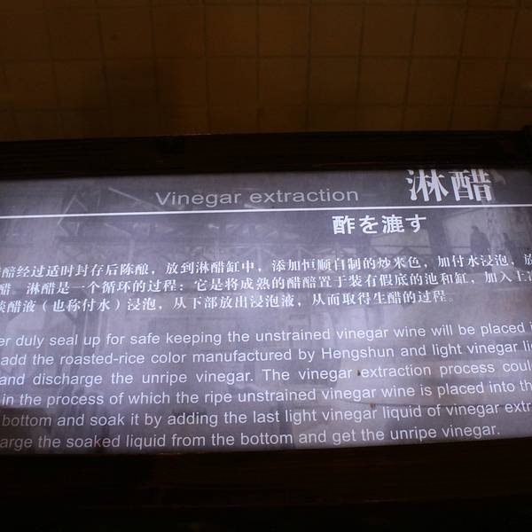 很可惜,老作坊整修中,没能参观。期待春节上老厂门口打酱油ki很可惜,老作坊整修中,没能参观。浓浓醋味扑面而来,估计可以管1个月不感冒啦。了解了醋文化和醋工艺,离开再带走一坛陈醋。期待春节上老厂门口打酱油ki。