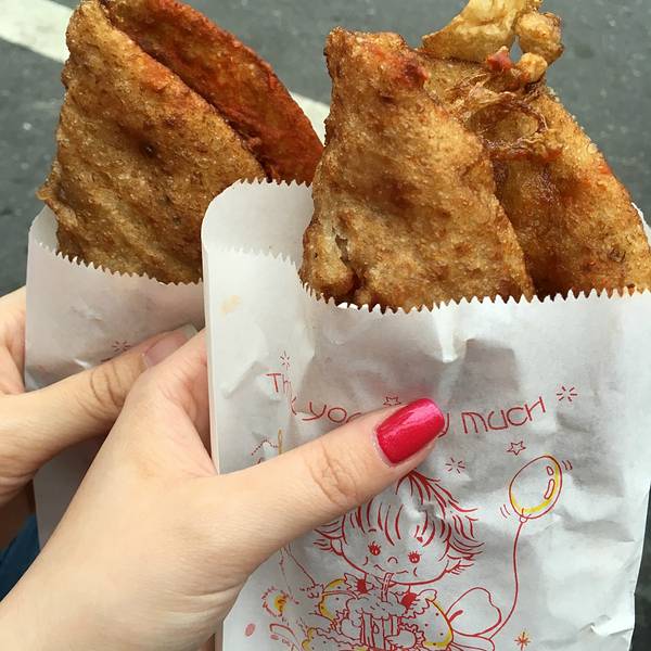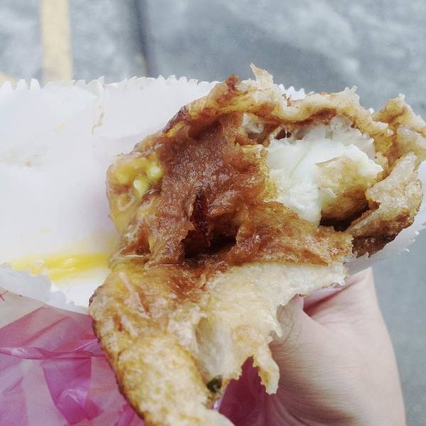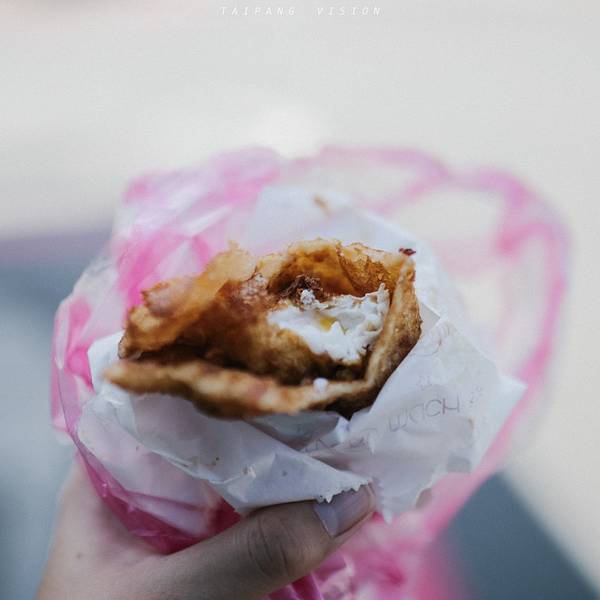 结束一天的出游回到酒店稍事休息又要出门完成一件大事啦,对啦就是觅食!今天必须要把炸蛋葱油饼从吃货清单上搞掉!本着多吃多运动的原则当然还是要走着去啦,从酒店一路走一路问走了差不多快四十分钟才找到炸蛋葱油饼的摊子,已经排了长长的队,想必都是慕名而来的游客吧,不过要是周围邻居也想吃这口的可咋整,难不成也要每天挤在游客中间排大队么。不管啦,今天我先吃到是王道。炸蛋葱油饼呢顾名思义就是一个葱油饼中间夹个炸鸡蛋,原本以为是不是网友们的网评都过高了才会有这么多人来吃,结果没想到一个简单的葱油饼夹溏心炸鸡蛋简直好吃到爆炸 !为啥,这到底是为啥,加了什么神秘的配料吗?跟母后每人一份,站在街边欢欣愉悦的消灭掉了,如果不是排队太长,真心想再搞一个啊。吃完为了消食继续不行扫街啦,在商业街买了阿美麻糬回来带给朋友们当作手信,在街上看到为了政选各种拉票的演讲会,还在回酒店的最后一刻冲进全家买了个呆萌的兔子甜筒,一天的运动量和食物品质都大满足~~~