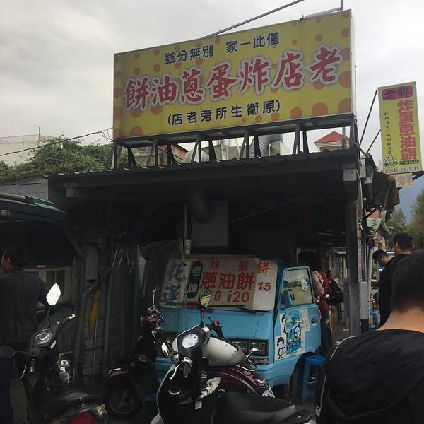 虽说要省钱,虽说是自由行,虽说是暴走,但是每次这样的旅行我会安排一个早上自然醒,想睡到几点就几点,这也是自由行的优点,可以自己安排时间,嗯,说这么多就是为了掩饰懒。那啥,居然睡到了12点,第一是可能因为前一天骑了一天车太累了,第二是因为所住的4人间居然只有我一人在住,实在是太赞了哈哈。 起来后慢慢吞吞地梳洗,享受这种慢悠悠的生活。今天行程一点都不紧,可以说这天没有任何景点,平凡的一天。 走到面对花莲火车站左手边的车站撘公车到复兴街附近(记得自备散钱哦),炸蛋葱油饼就在附近了,就在7仔对面那条小巷里面。总共有两家不同的葱油饼店,我到的时候已经下午两点了,蓝色车那家已经排起一条小队,美食当前岂能犹豫,赶紧排队去。另一家黄色车的竟然没有开店,这么傲娇人性的小食店在台湾到处可见,一切全看缘分吧。