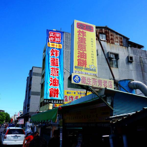 最火的炸蛋葱油饼在花莲市区复兴路和林森路交叉口。