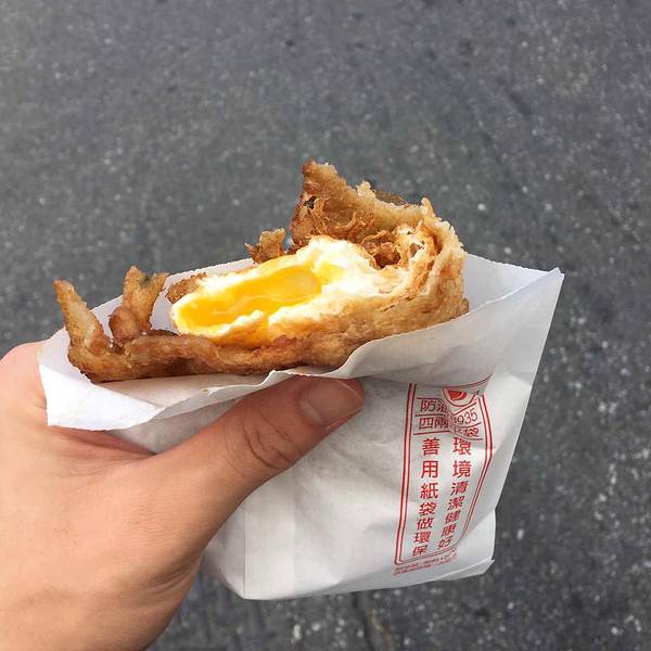 - ...网友们的网评都过高了才会有这么多人来吃,结果没想到一个简单的葱油饼夹溏心炸鸡蛋简直好吃到爆炸