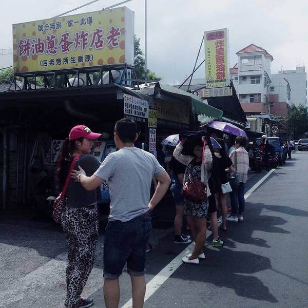 - 我们就决定去吃老牌炸蛋葱油饼没想到那么热的天气 真的很多人诶拿了号等了大概大半个钟就到手啦...