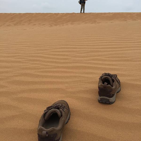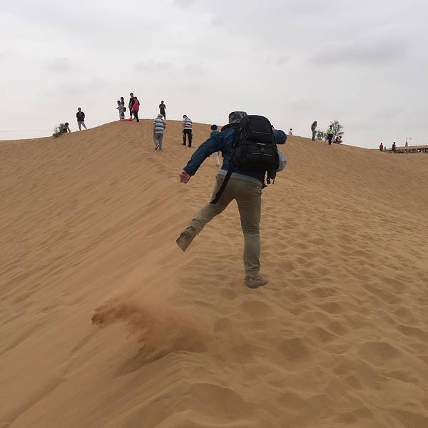當天中衛的天還是陰沉沉的,問當地的人,會不會下雨,當地人說這個天氣好呀,不然又熱又曬,沙子還燙腳,而且根本不用擔心下雨的問題,沙漠之所以會成為沙漠是有道理的,天吶,絕壁真理呀。