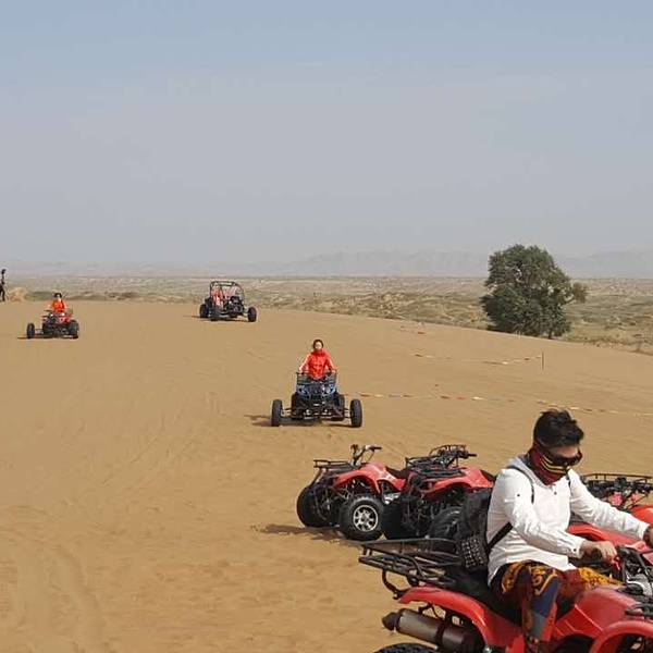 这里不是热门景点,再加上我们来的早,包场了好嘛 。玩这个最刺激的就是车子过了坡顶开始俯冲的时候刺陵客栈——腾格里沙漠