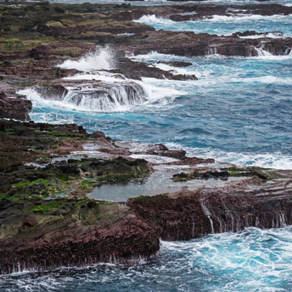 沿着石板步道,深入观察海蚀沟,并欣赏石礁和海浪的完美结合。