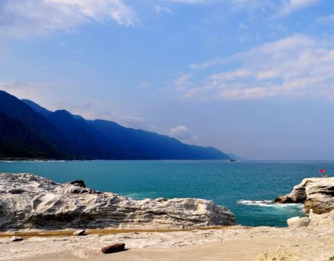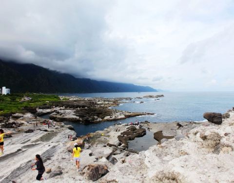 实用 其实就是一整块地质层被板块运动挤压上行形成的一个风景区,这里没有门票,也没有细腻到让你想要亲吻的沙石从花莲市区出发,沿着海岸公往南走大概70公里,就到了花莲县丰滨乡港口村,从村口往北走大概两公里,就到了石梯坪。其实就是一整块地质层被板块运动挤压上行形成的一个风景区,这里没有门票,也没有细腻到让你想...从花莲市区出发,沿着海岸公往南走大概70公里,就到了花莲县丰滨乡港口村,从村口往北走大概两公里,就到了石梯坪。其实就是一整块地质层被板块运动挤压上行形成的一个风景区,这里没有门票,也没有细腻到让你想要亲吻的沙石,海边都是大颗大颗的石头,奇形怪状,随意铺排,很是硬朗的感觉。隆起的珊瑚礁上还有许多圆洞,偶尔有螃蟹跟不知品种热带鱼穿梭悠游。大块的岩石由于海浪的冲击形成了很多大小深浅不同的壶穴,观赏价值极高。岩层软硬不同,硬的外突,软的内陷,岩体又以一定倾角日渐向向东南方的海中倾斜,就这样变成了石梯状。完全没有可以遮荫蔽日的地方,幸好去的那天没有太阳,要不然晒惨了。岩石特别洁白,白的剔透诱人,海水是无法形容的湛蓝,蓝的惊心动魄。听着海浪拍击岩石的声音,站在观景台上眺望大海,那感觉棒极了,跟整个台湾清新文艺的风格一点不搭调,但我喜欢呆在这里,一个看了让人心生豪迈的地方。 展开