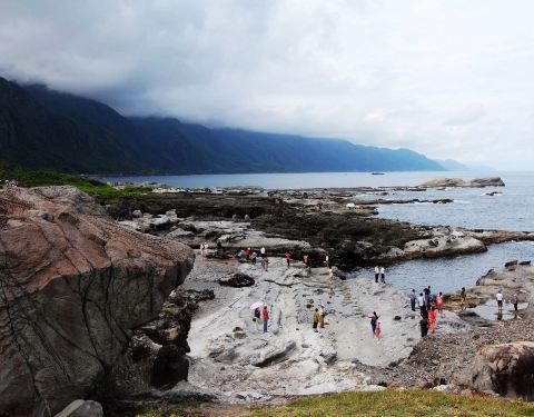 石梯坪因地形呈梯状而得名,原为火山喷发后形成的一片凝灰岩质的地层。这一带海岸由于岩层间软硬的差异,经长年海蚀后,硬的外凸,软的内凹,岩石又以一定倾角向东南方的海中倾斜,所以形成了石梯状的形态。顺着渔港望过去,弧形海岸风景优美,吸引了很多游客前来观赏拍照。来到石梯坪,可沿着石板步道,深入观察海蚀沟、海蚀崖、海蚀平台、隆起珊瑚礁等地质景观,也可选择在此夜宿,漫步于月色中,享受身心与大自然合而为一的舒畅感。这里也是很多潜水和海钓爱好者常去的地方,很多当地人也会经常来这里露营。
