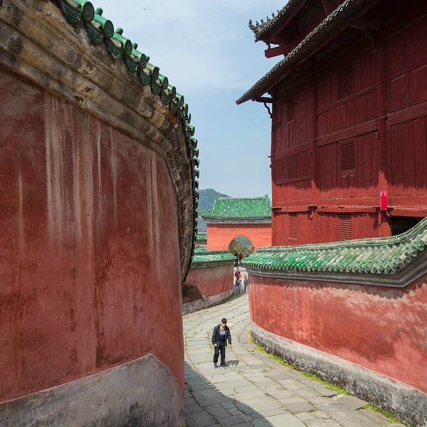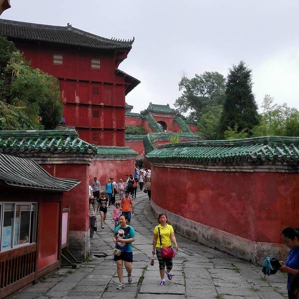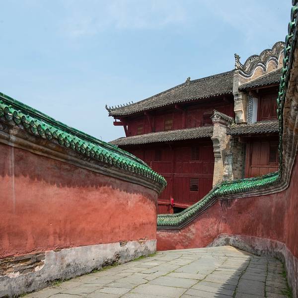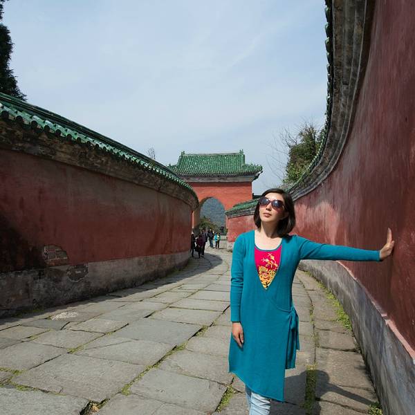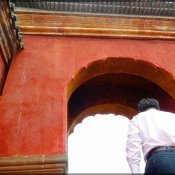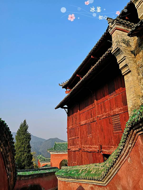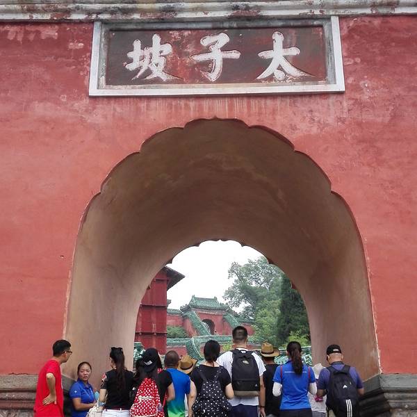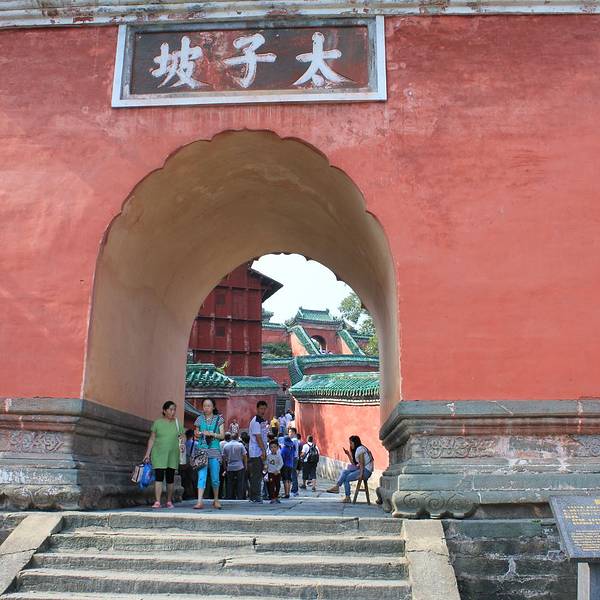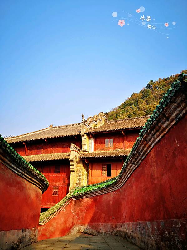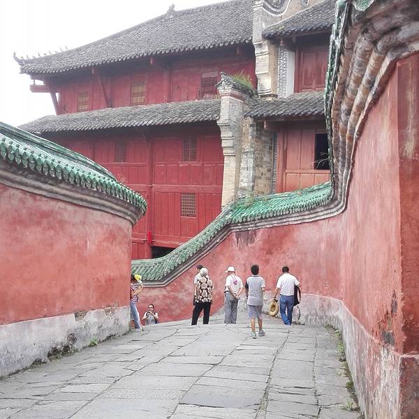 太子坡的山门,游客太多,但即便如此,还是感觉很壮观!进来就看到太子坡四绝之一的九曲黄河墙,这曲线蜿蜒妩媚,用黄河墙来形容完全表达不出她的美,应该叫女儿墙!生活中红色和绿色搭配在一起就是东北大妈的既视感,可是为嘛在这里看着就那么和谐呢!红墙碧瓦加上青山隐隐,真是美得不要不要的!上来进到大殿看到这门福禄寿的红墙和亭子也是美得庄严又古朴!感觉随手一拍就是明信片!在殿内不好拍照,所以还是拍这红墙美。忍不住拍张人像。攻略: