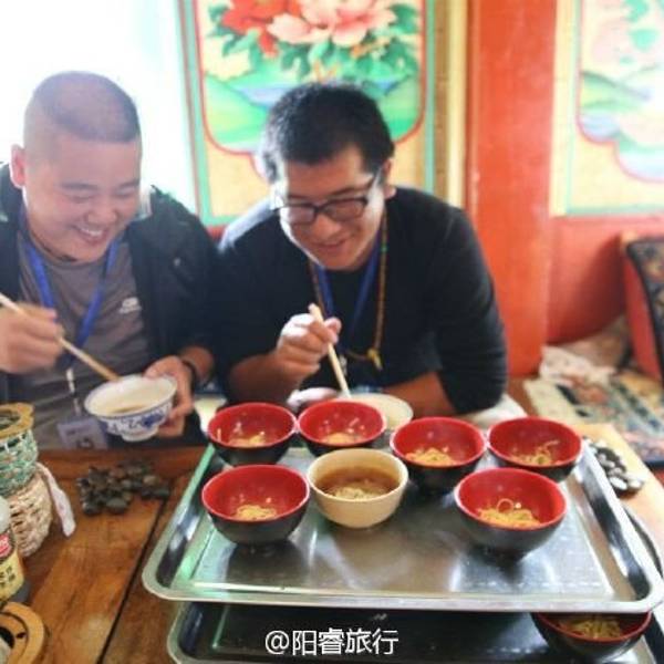 云南跨越西藏,只为感受那n碗佳加面 从云南沿着214国道,到达滇藏分界线隔界河,跨越那分界线以后就正式进入西藏的地盘。中午饭选择在芒康县纳西民族乡纳西民俗村,集体挑战盐井佳加面。 进入店面,就感觉进入了节假日的热闹场面,伴随着热情洋溢的藏歌,还有扎西、卓玛们热情地吆喝,旁边的锅炉里煮着沸腾的面条。坐下来后,惊奇的发现有一箩筐的小石头,还有一些腊肉、泡天椒、泡菜、凉拌木耳等小菜。