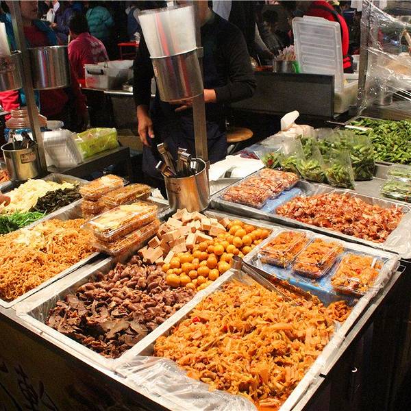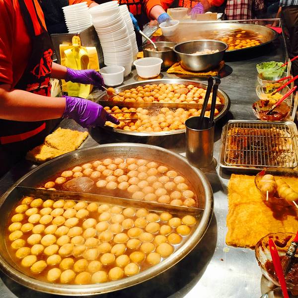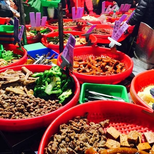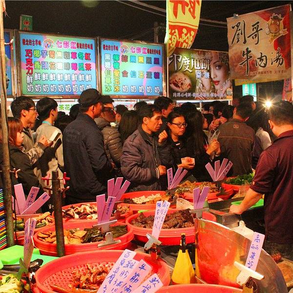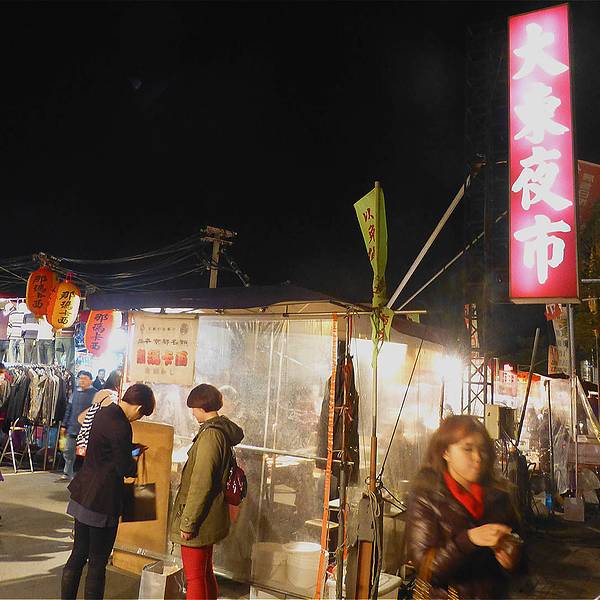- 大东夜市更像是我们比较熟悉的夜市模式——所有摊位都摆在一个区域内,一排排美食摊子,可以逛很久