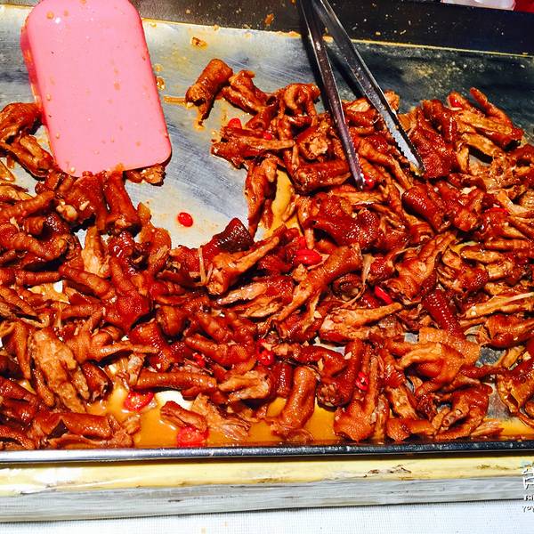 - 感觉大东夜市小吃的肉类品种比较多。夜市摊位挤得满满当当,被划分为两片小商品区和中间的美食区