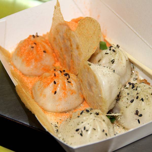 垦丁脆皮汤包 垦丁夜市之旅的最后一站 和上海小笼和无锡汤包有点不同,包子皮有点像水晶皮 又有点面粉的感觉,小小的白白的一只 看起来很Q很可爱的。 一盒可以选两种口味的,选了cheese味和海苔,一盒一个人吃刚刚好 不会太多。 汤包味道蛮好。老板很热情