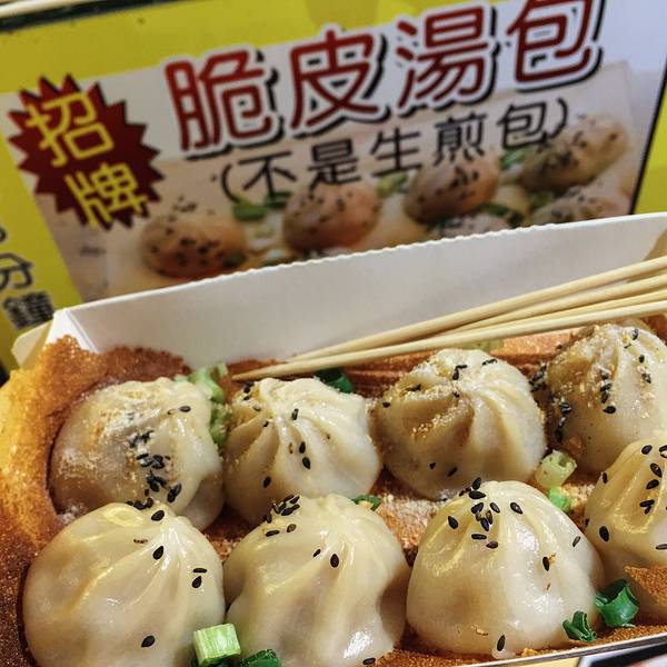 第二家:垦丁脆皮汤包 70台币一盒。 这家在711门口,总是有人在排队购买,六个一盒,70台币。大小就是小笼包的样子,咬开之后会流出来汤汁, 有多种口味:原味、海苔、蒜末、芥末和起司。老板会给一个小牙签,用牙签插着吃。实话来说,口感和味道都不如上海的生煎包,也不如天津正宗的狗不理包子。不过总体来说,味道也算对得起价格。