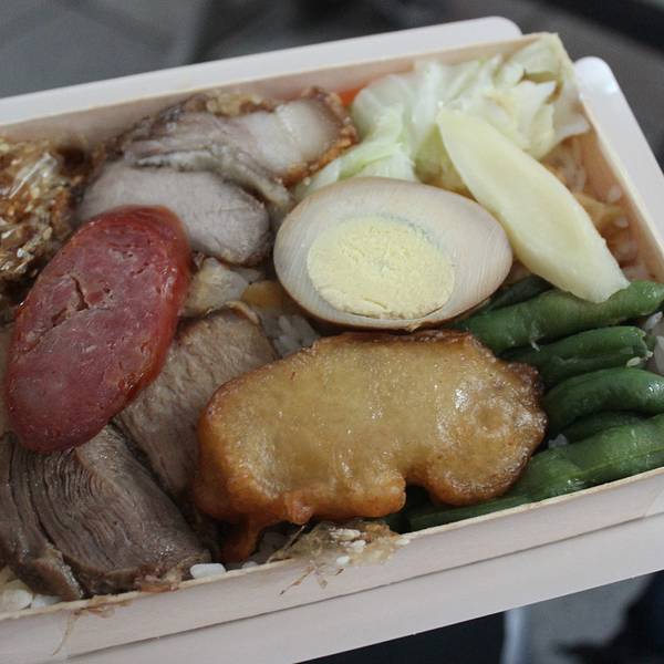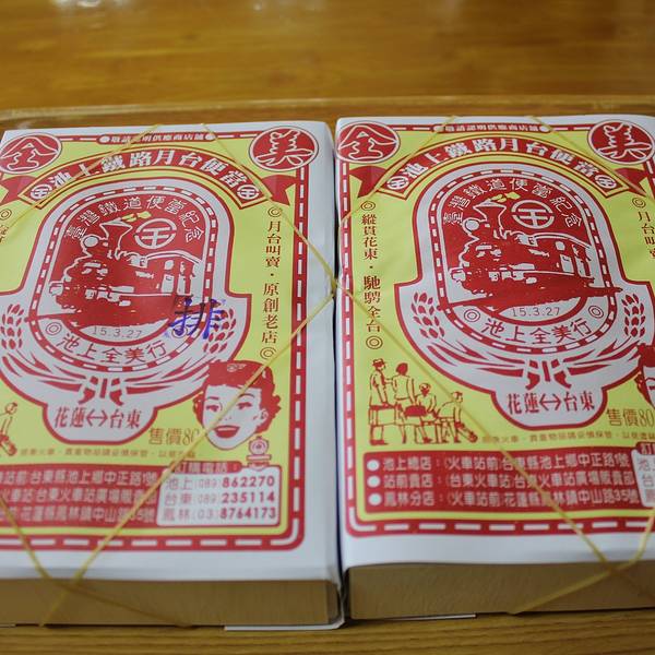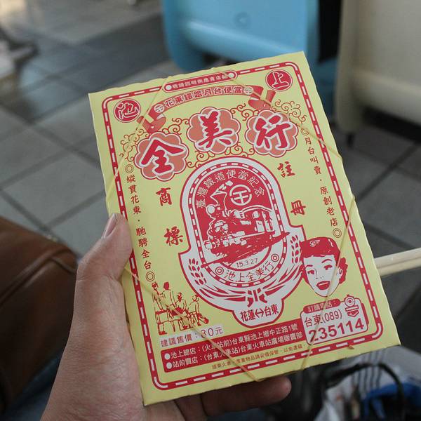 台湾受到日本的影响,在铁路便当这一块做得非常成功,除了台铁便当之外,在台湾最有名的当属池上便当。池上属于台东,据说在池上出产的大米非常棒,于是就产生了池上特产便当。乘坐台湾台铁到达台东站,在站内有...台湾受到日本的影响,在铁路便当这一块做得非常成功,除了台铁便当之外,在台湾最有名的当属池上便当。池上属于台东,据说在池上出产的大米非常棒,于是就产生了池上特产便当。乘坐台湾台铁到达台东站,在站内有一家全美行池上便当。位置就在广场之上,价格实惠,只要新台币30元。外包装是纸加上木盒,四角用皮筋套上,封面的印刷透露出浓浓的时代特色,红色的美人,华丽的花边,再加上各类信息,仿佛回到那个在站台叫卖便当,车上盛满急于归乡的乘客的年代。目前除了台东站外,池上有一家总店,位于池上的中正路1号,也可以到总店购买。打开便当,里面种类。我买的全系列包括有米饭、鸡蛋、腊肠、豇豆、生姜、白菜、醋肉、鸡卷、叉烧等,虽然不是很热,但吃起来津津有味。大排套餐有一块大排,总体差别不大。