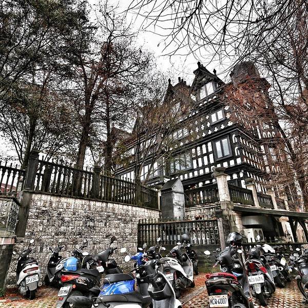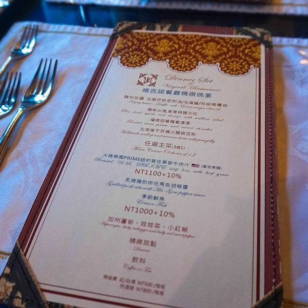 心心念的老 英格兰 ,本来是想喝下午茶,但是来到已经下午将近6点,天色渐暗,除非是住客或者食客,不然园区也不能再参观了。 老 英格兰 庄园,5星级酒店,我们的晚饭在这里解决!晚餐只有2种套餐,标准餐和素食套餐,均是1100新台币/人,就餐环境没得说,还没进酒店我们就各种拍拍拍~餐饮味道嘛,见仁见智了,R先生他们点的标准餐,我点的素食,主餐全称。。。XXX干红酒牛排,应该是7分熟吧,没有黑椒汁,清淡的很,最后没吃完。门口停满了机车,机车在 台湾 是非常普遍的交通工具。四人合计了一下,来都来了,这个逼还是要装的。。幸运的是本来要排位预定到7点才能入场的就餐席位被告知可以马上入场,那还等什么,一拥而入吧!玩了一天有些憔悴,但是看到美美的老 英格兰 ,还是要打起精神华灯初上,向R先生撒个娇,人家肚子饿,人家想在这里吃嘛(努力 台北 强调)里面更是金碧辉煌啊!正式开餐!