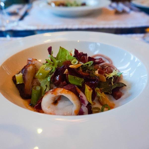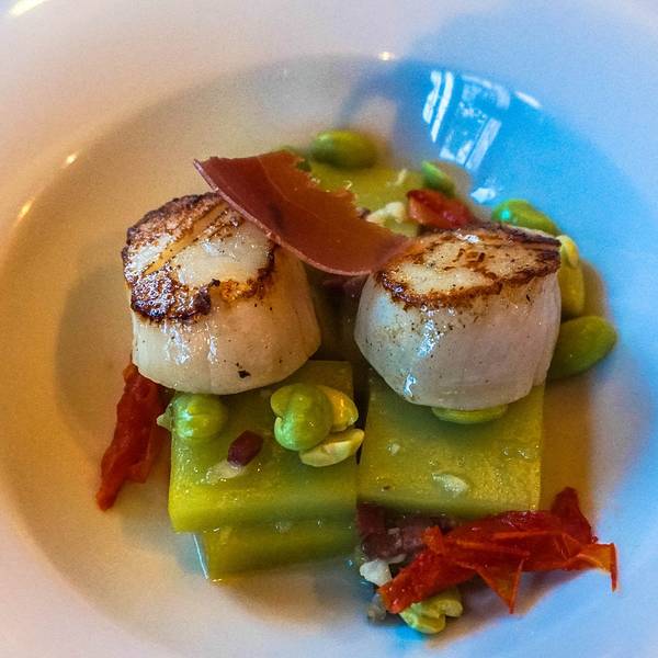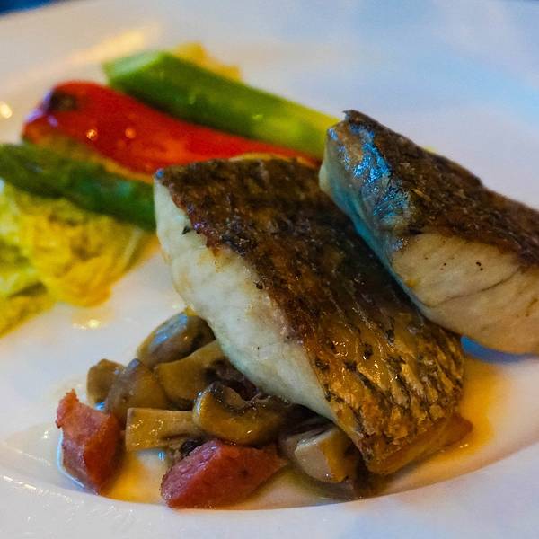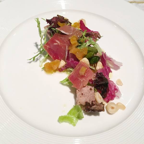 预定了5点30场的老英格兰庄园的晚餐。最好吃的一道菜!番茄皮和火腿片让口感更有层次。中规中矩。奇妙