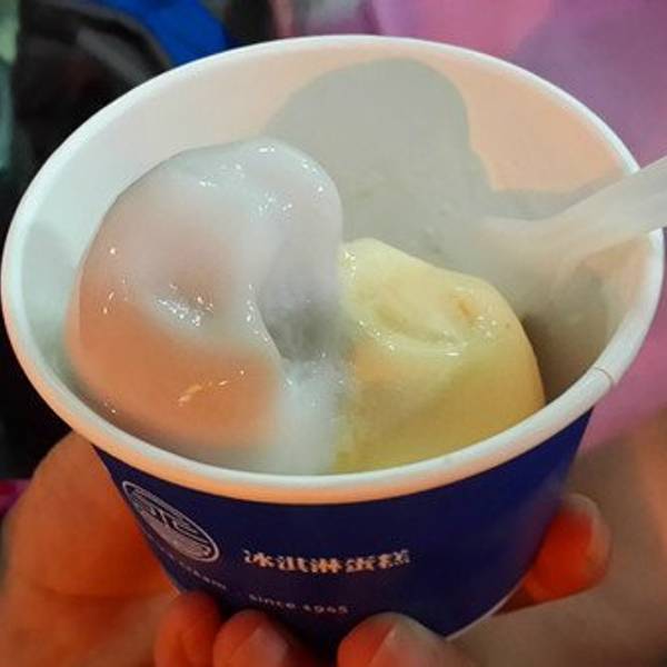 (店名叫做永富冰激凌,入口的口感超好!吃完火锅,大家决定散步消化,慢慢挪步到西门町