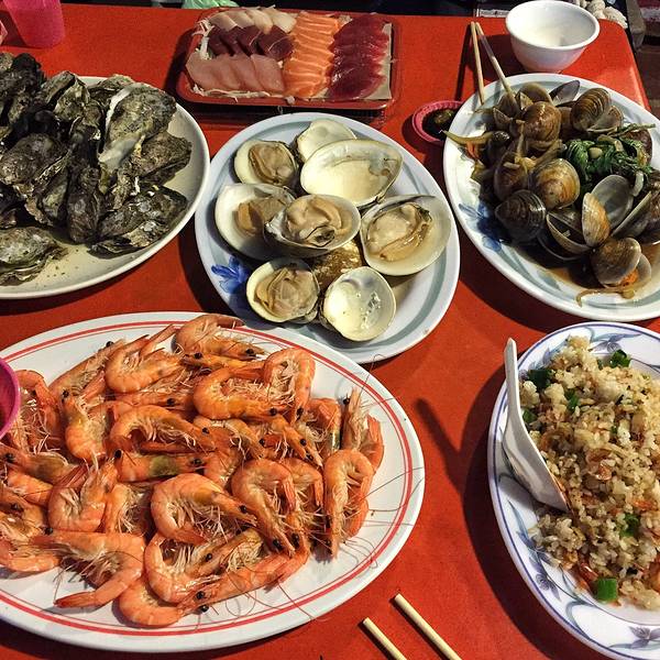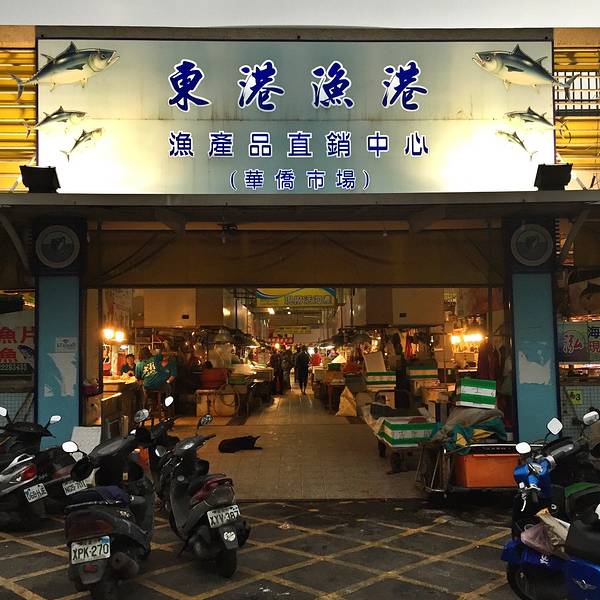 東港漁港漁產品直銷中心 地址:屏東縣東港鎮朝隆路39號 電話:(08) 833-9969 營業時間:11:00–20:00 第一天從台北驅車南下約六小時到屏東東港,在簡單的辦理入住登記後便前往號稱全台灣魚穫最足、價格也最便宜的「東港漁港漁產品直銷中心」享用晚膳。 東港漁港漁產品直銷中心,昔稱華僑市場。由於當地人稱穿著服裝整齊,購買魚貨大方的外來遊客為「華僑」而得名。座落於東港渡船頭邊的黃昏市場,佔地近1500坪,因提供各式各樣現撈且物美價廉的海鮮魚貨而遠近馳名,攤位數達四百多個,目前已集中規劃為鮮魚區、生、熟食區、漁特產區及美食攤,除了有琳瑯滿目的生猛海鮮美食外,更可以漫步到頂樓觀海廣場,喝杯咖啡,吹吹海風,品味浪漫又自由的漁港風情。