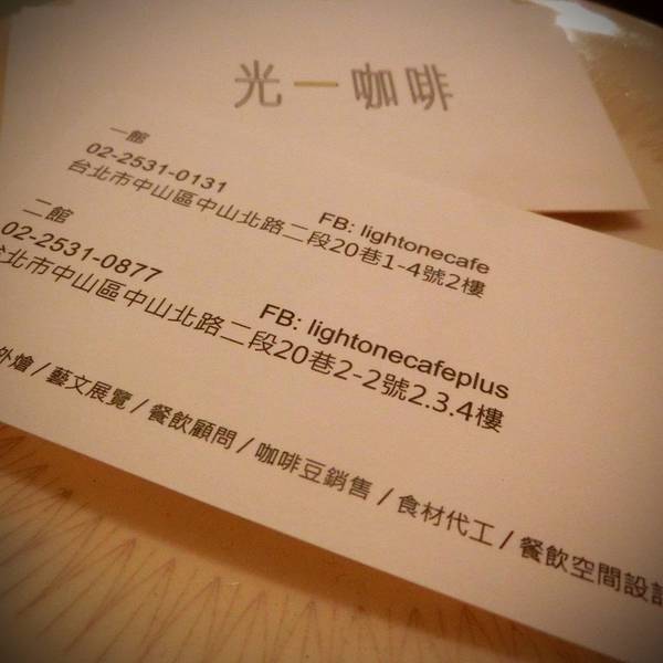 地址:台北市中山區中山北路二段20巷2-2號。2.3.4樓(Google MAP)捷運中山站。 營業時間:09:00 ~ 21:00。 09:00 ~ 22:00(周五周六)。 用餐限制:二小時(平日若無訂位或人潮不多,店家將不多限制)。 店內飲品續杯半價(限個人、啤酒除外)。外帶咖啡一律半價。餐點也略有不同,光一咖啡主推的咖啡與果粒茶的menu是相同的, 但是只有光一敘集,才有提供輕食餐點(帕尼尼就是輕食), 光一咖啡則只有手作蛋糕的販售。地址:台北市中山區中山北路二段20巷2-2號。2.3.4樓(Google MAP)捷運中山站。 營業時間:09:00 ~ 21:00。 09:00 ~ 22:00(周五周六)。 用餐限制:二小時(平日若無訂位或人潮不多,店家將不多限制)。 店內飲品續杯半價(限個人、啤酒除外)。外帶咖啡一律半價。離開光一敍集,斜對角的二樓,正是光一咖啡, 正確來說,光一咖啡是先坐落於中山區巷弄(只有二樓)。 光一敍集則是光一咖啡的二館(敘集有2.3.4樓層), 兩間營業時間也略有不同,光一咖啡比較晚開門, 敘集則是早上九點就開門營業了。踩著磨石樓梯登上二樓, 樓梯間的壁畫,以宣告著要帶領進門的人客, 看見不同風味的文藝空間。 樸實復古的光一咖啡,就是這樣令人懷舊, 讓忙碌的都市人,在承受著壓力的白天過後, 有這樣的角落,可以受這寧靜的氛圍,舒緩著高壓情緒。踩著磨石樓梯登上二樓, 樓梯間的壁畫,以宣告著要帶領進門的人客, 看見不同風味的文藝空間。 樸實復古的光一咖啡,就是這樣令人懷舊, 讓忙碌的都市人,在承受著壓力的白天過後, 有這樣的角落,可以受這寧靜的氛圍,舒緩著高壓情緒。