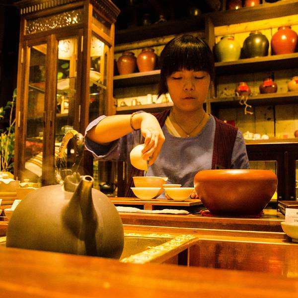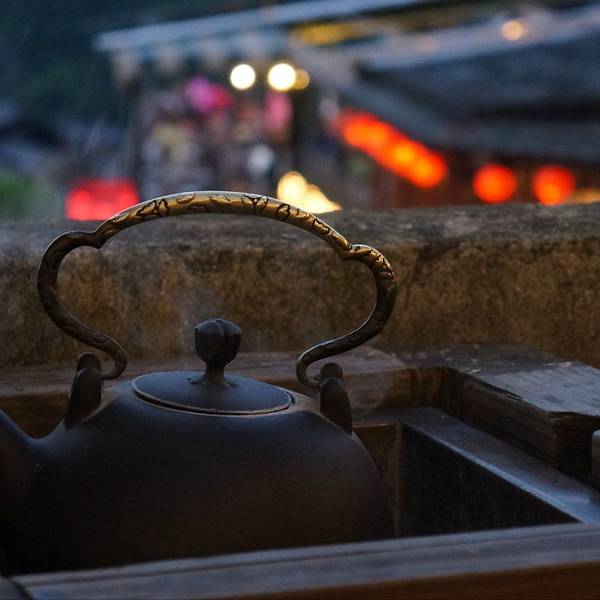 白天的九份味道很淡,没有惊喜,除了这家九份茶馆;老宅内部装饰非常不错,劈柴围炉烧水沏茶,一盏盏自斟自饮看看风轻云淡的风景。 九份有很多面海带露台的茶坊,其实平日白天来喝茶就好。 茶坊下一层还有一个瓷...