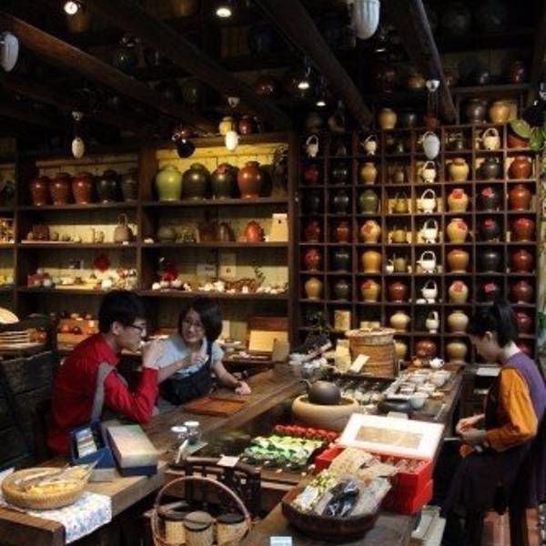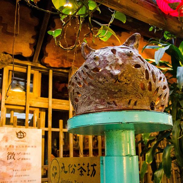 白天的九份味道很淡,没有惊喜,除了这家九份茶馆;老宅内部装饰非常不错,劈柴围炉烧水沏茶,一盏盏自斟自饮看看风轻云淡的风景。 九份有很多面海带露台的茶坊,其实平日白天来喝茶就好。 茶坊下一层还有一个瓷器博物馆,听驻店老大讲了很多这里瓷器艺术品的设计观点和理念,捎带手买了两张九份明信片,15台币,很便宜,而且是我喜欢的九份夜景。 九份茶坊地址:九份基山街142号