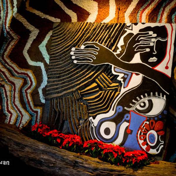 ...,典型的台湾原住民的艺术风格,独具特色,十分另类的餐厅,菜肴和装饰比起来,确实更能记住的是后者