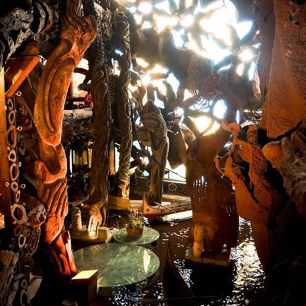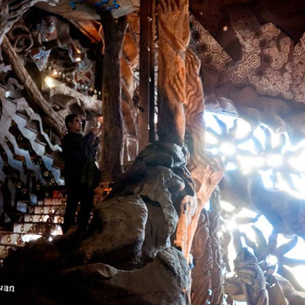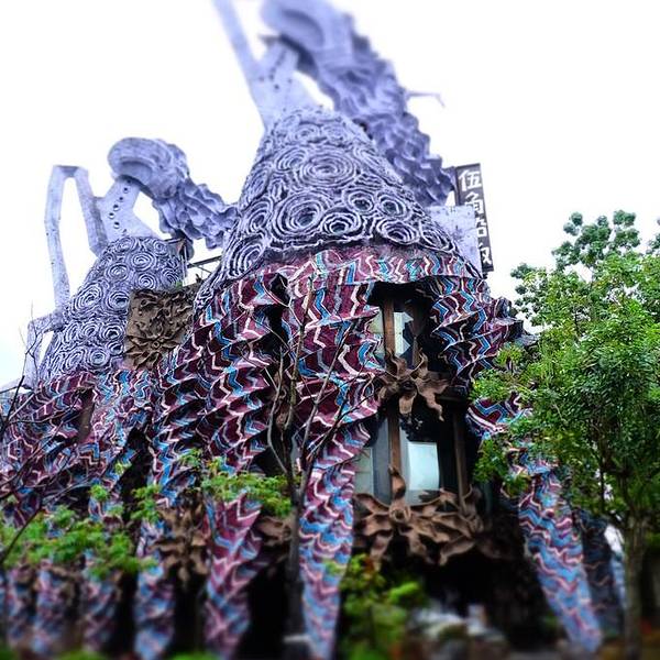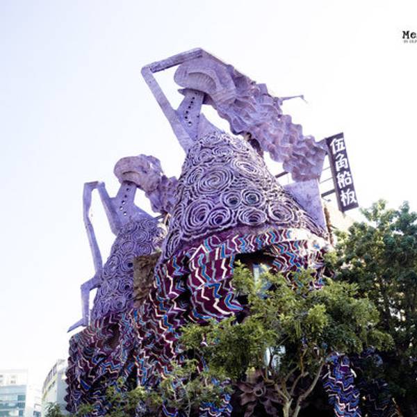 伍角船板餐厅 被称为“台湾的高迪”,耗资两亿修建。设计师文化不高,美术出身,不画设计图,每天到现场指挥施工,典型的台湾原住民的艺术风格,独具特色,十分另类的餐厅,菜肴和装饰比起来,确实更能记住的是后者。我们点了一个套餐,虽然不想浪费,但确是有心无力吞····,招牌是船板鮮奶泥配洛神花茶,其他的还是别点了,进去拍拍照,看看“台湾高迪”算了。 捷运: 劍南路站,位於美麗華斜對面。