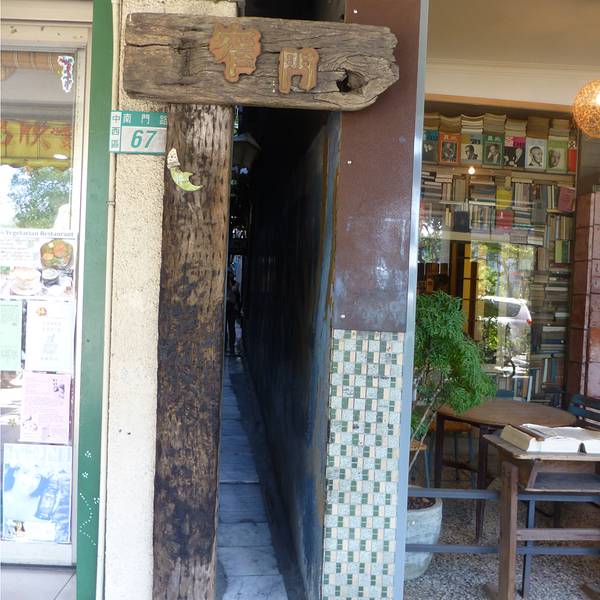 窄门咖啡是家老咖啡馆,女老板早在十几、二十年前,为了一圆开咖啡馆的梦想,就将这家店开在正对着孔庙南门路,一栋建于日本大正年间的西式洋房二楼上。这里最让人津津乐道的不是咖啡有多好喝,而是入门必须先穿过窄窄的小巷,这仅容一人侧身而过的 38 厘米巷子,除勾起了客人的好奇心之外,也设下了胖子勿入的条件。咖啡屋保留了老屋的结构,磨石子楼梯、嘎嘎作响的桧木地板、木窗,处处可见岁月的痕迹,四周植满绿意盎然的植物,以及二楼临窗的视野,正对着孔庙,为在此用餐的客人增添了台南细致的一景,这些细节让这咖啡馆历久不衰。